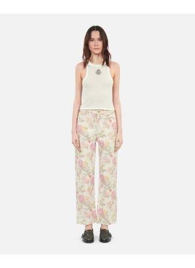 Fabriqué en coton ajouré, ce débardeur court ajusté présente un col rond classique et une sérigraphie devant. Sans manches, il garantit une aisance optimale et une silhouette affinée.