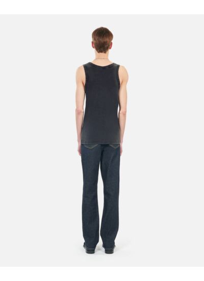 Confectionné en coton lavé, ce débardeur ajusté côtelé épouse parfaitement la silhouette tout en offrant un confort durable. Son col rond et ses manches absentes renforcent son esprit casual, tandis que la sérigraphie discrète sur le devant apporte une touche graphique subtile et distinctive. Idéal pour être porté seul ou sous une veste, il s’adapte à toutes vos envies de layering.