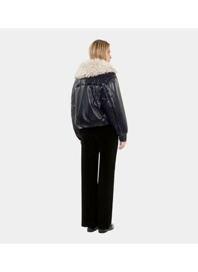 Réponse : Le col effet sherpa apporte une chaleur supplémentaire tout en ajoutant une touche de style contrastée.