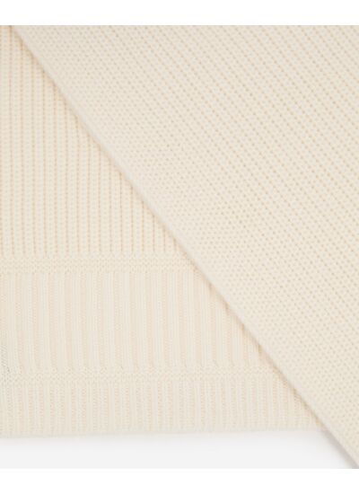 Réponse. L’écharpe est proposée en écru, une teinte naturelle et polyvalente.