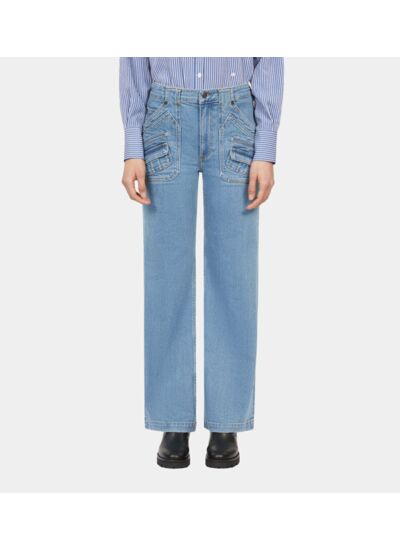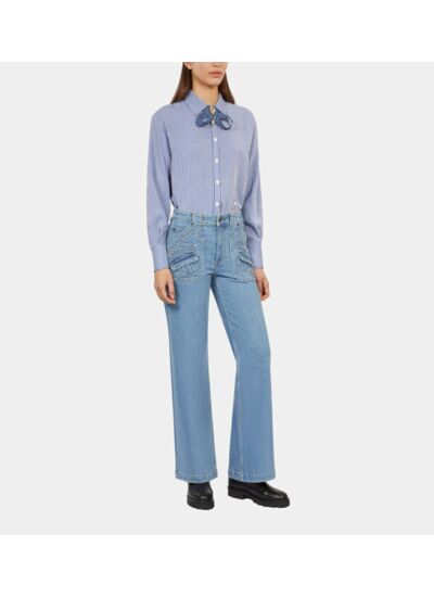 Adoptez une silhouette affirmée avec ce jean flare bleu signé The Kooples, alliant modernité et caractère. Sa coupe évasée et sa taille haute sculptent la silhouette pour un style à la fois audacieux et élégant.