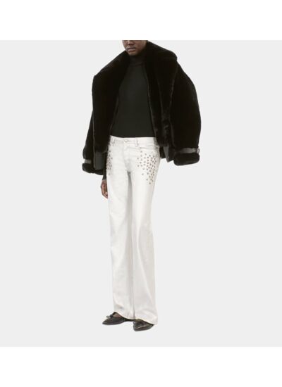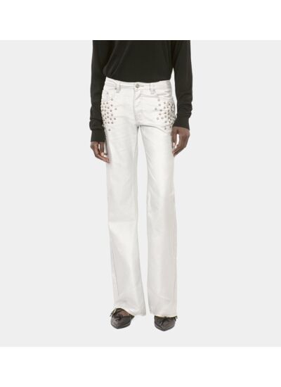 Adoptez une allure audacieuse avec ce jean clouté droit argenté, une pièce qui allie modernité et caractère. The Kooples signe un modèle unique pour sublimer votre silhouette avec une touche rock chic.