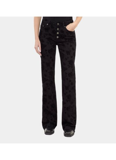 Le jean flare noir qui réinvente votre silhouette avec élégance et audace. Une pièce incontournable signée The Kooples, pour un style affirmé et moderne.