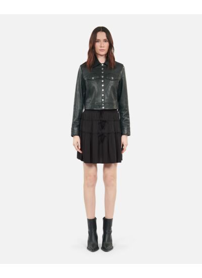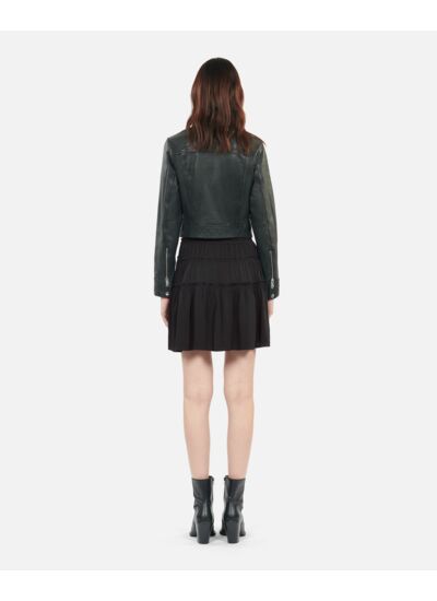Conçue pour épouser parfaitement les formes, cette jupe ajustée met en valeur la taille grâce à ses détails de fronces délicats. Sa coupe courte de 44 cm pour une taille 36 offre un équilibre parfait entre audace et raffinement, idéale pour une allure chic en toute occasion. Le noir profond assure une polyvalence sans faille, facile à associer à vos pièces favorites.