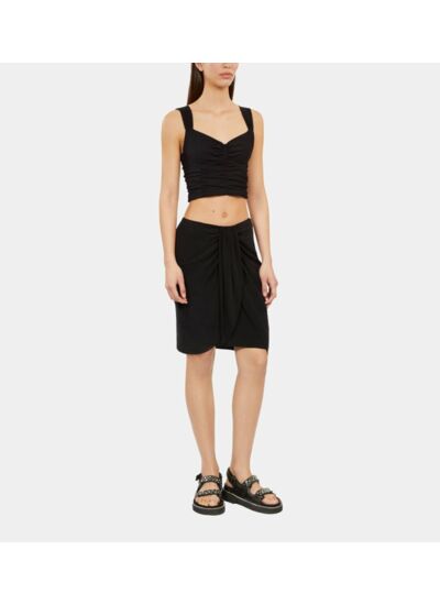 Sublimez votre silhouette avec cette jupe courte noire drapée en soie lavée, un essentiel chic et intemporel signé The Kooples. Son tombé fluide et son drapé délicat apportent une touche d’élégance moderne à toutes vos tenues.