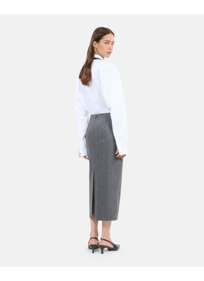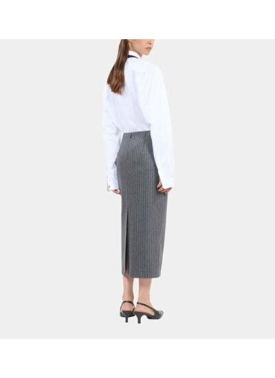 Affirmez votre élégance avec cette jupe crayon mi-longue à rayures, un indispensable pour un look moderne et structuré. Son design graphique sublime la silhouette tout en apportant une touche contemporaine à votre garde-robe.
