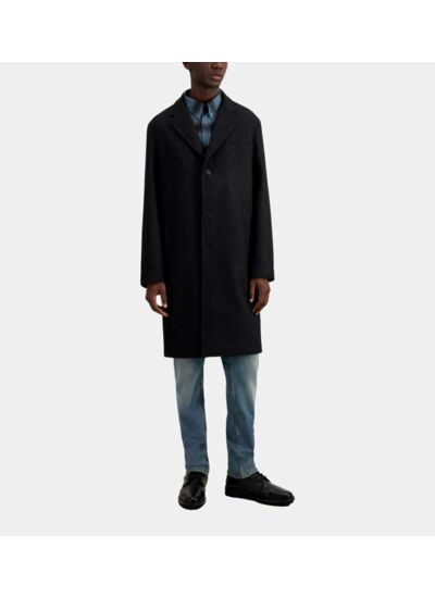 Ce manteau pour homme présente une fermeture à trois boutons, un col cranté, des manches longues, une poche passepoilée à la poitrine et des poches latérales raglan. Sa matière micro dessinée apporte un léger relief visuel, signature discrète de la qualité The Kooples.