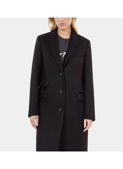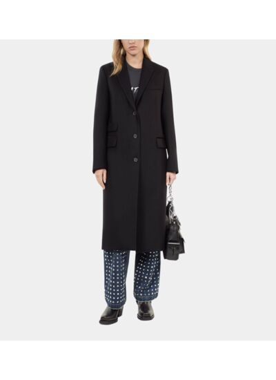 Matière : laine mélangée noire. Coupe longue droite. Fermeture frontale. Marque : The Kooples. Destiné à un usage féminin.