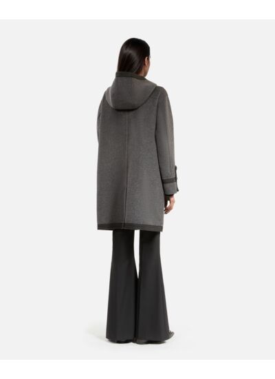 Réponse : Les boutons héritage, les galons contrastés et les poches passepoilées apportent une touche d’élégance et de caractère à ce caban.