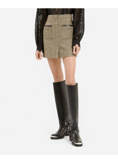 Affirmez votre style avec cette mini jupe en tweed signée The Kooples, un incontournable pour une allure chic et moderne. Sa coupe droite et ses détails soignés subliment toutes vos tenues, du bureau à vos sorties.