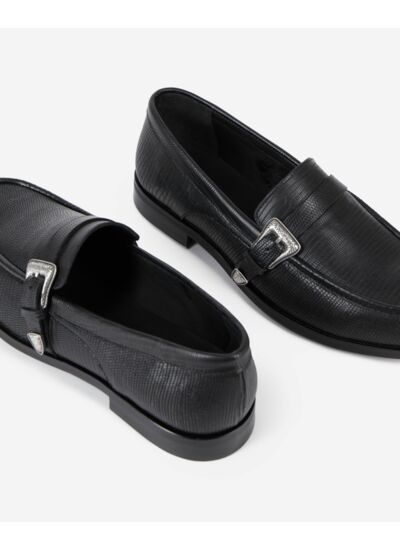 Affirmez votre style avec ces mocassins en cuir noir signés The Kooples, alliant élégance et audace western. Une pièce incontournable pour sublimer toutes vos tenues avec une touche contemporaine.