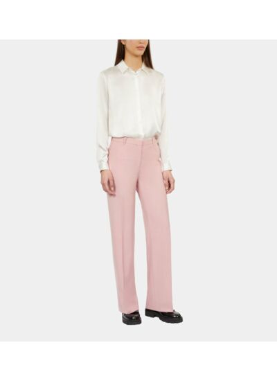 Coupe droite, taille haute avec passants, pli cassé avant et arrière, poches latérales italiennes, poches dos passepoilées, fermeture zippée avec bouton de rappel et agrafe. Marque : The Kooples.