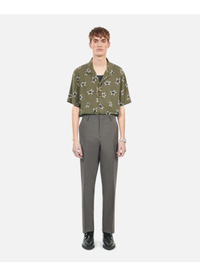 Pantalon homme The Kooples en laine micro carreaux, coupe droite, taille moyenne avec passants, plis cassés avant et arrière, poches latérales italiennes, poches dos passepoilées, fermeture zippée avec bouton de rappel et agrafe, tissu italien.