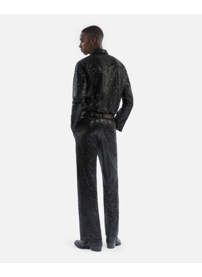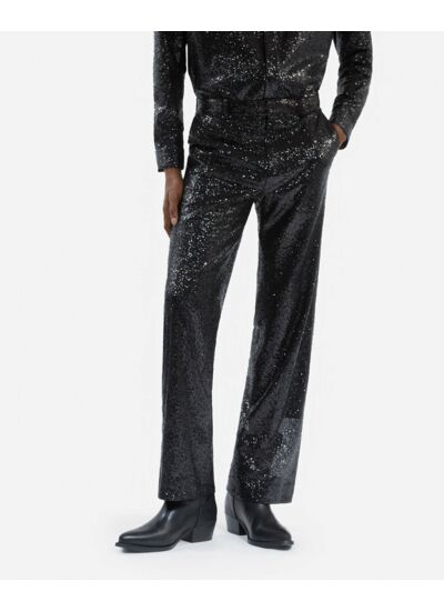 Affirmez votre style avec ce pantalon droit noir orné de sequins brodés, une pièce audacieuse signée The Kooples. Parfait pour ceux qui veulent allier élégance et originalité sans compromis.