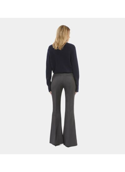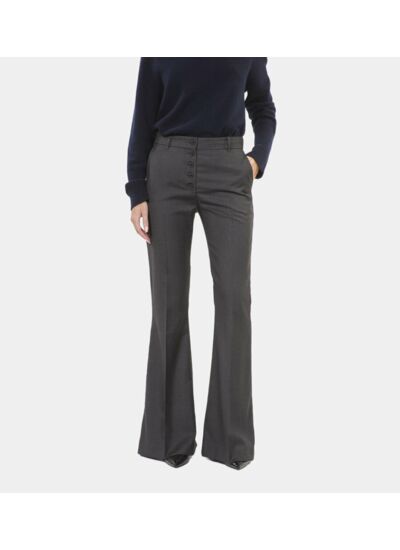 Fabriqué en laine, ce pantalon présente une coupe flare classique avec une taille ajustée. Sa teinte grise polyvalente facilite les combinaisons avec vos pièces favorites. Marque : The Kooples.