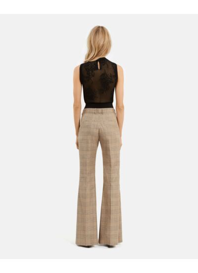 Détails techniques : pantalon femme The Kooples, taille moyenne avec passants, jambe flare, fermeture zippée avec bouton de rappel et agrafe, poches latérales italiennes, poches passepoilées au dos. Pour un look complet, associez-le au modèle FVES30030KBEI16.