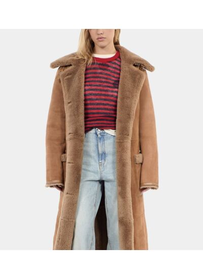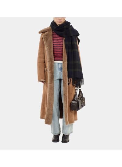 Adoptez l’élégance brute et la chaleur authentique avec ce blouson en peau lainée longue marron signé The Kooples. Une pièce incontournable qui allie style intemporel et confort absolu.