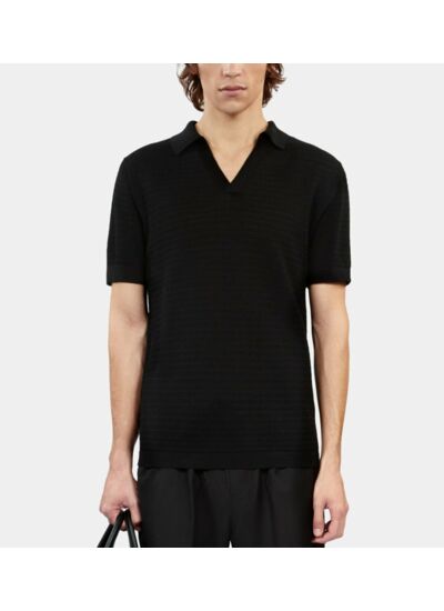 Affirmez votre style avec ce polo noir en maille ajourée, alliant élégance et modernité. Une pièce essentielle pour une allure soignée en toute simplicité.