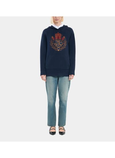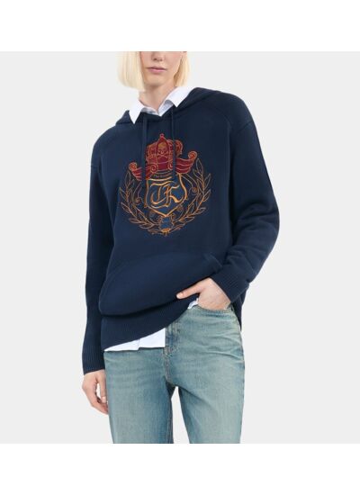 Confectionné dans des matières soigneusement sélectionnées, ce pull offre une silhouette moderne et épurée. Sa teinte bleu marine profonde s’adapte à toutes vos tenues, du jean casual à la jupe sophistiquée, pour un look sans effort mais maîtrisé. La capuche apporte une touche sportive tout en protégeant des intempéries légères.