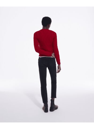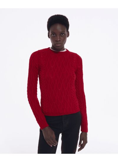 Matière : laine torsadée. Coupe : col rond, ajustée. Entretien : lavage à la main recommandé ou nettoyage à sec. Coloris disponibles : selon stock.