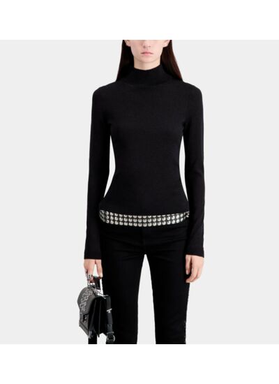 Coupe ajustée, col roulé, manches longues, broderie The Kooples sur le poignet gauche, fil lurex noir pour une brillance subtile et durable.