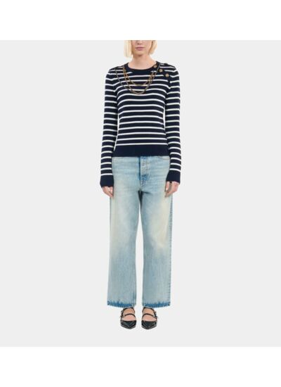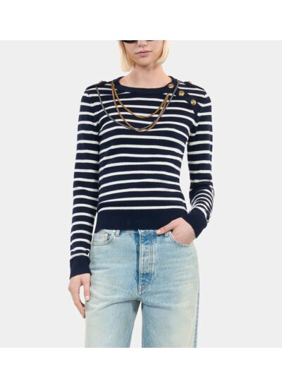 Affirmez votre style avec ce pull en laine à rayures signé The Kooples, une pièce qui allie élégance et confort. Son design graphique s’impose avec subtilité pour dynamiser toutes vos tenues.