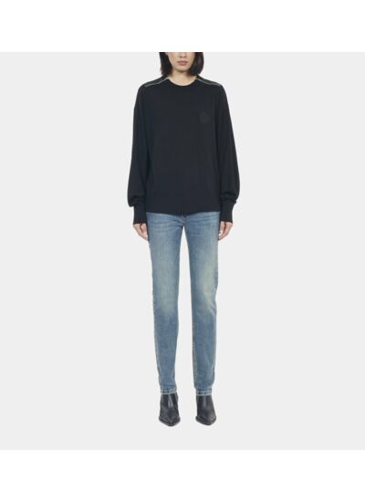Fabriqué en laine mérinos de qualité, ce pull présente une coupe large, un col rond zippé, des manches longues et une broderie blason ton sur ton. La recommandation taille précise de The Kooples garantit un ajustement optimal.