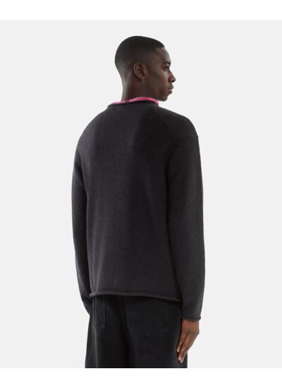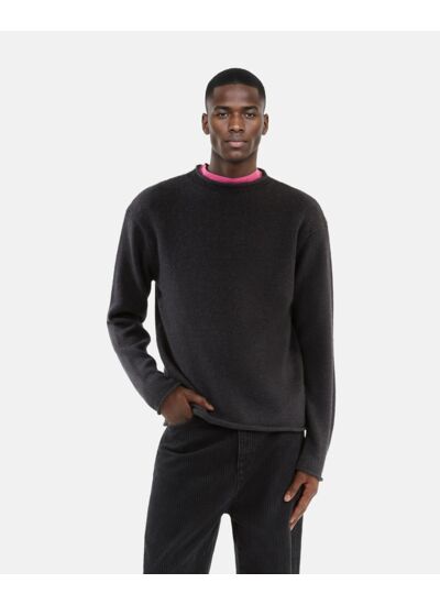 Pull homme The Kooples en laine, coupe droite, col rond, manches longues, bords roulants.