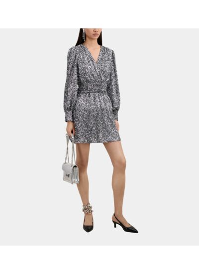 Brillez intensément lors de vos soirées avec cette robe courte argentée à sequins signée The Kooples. Une pièce audacieuse qui allie élégance et modernité pour sublimer votre silhouette.