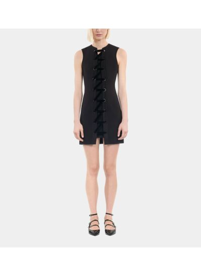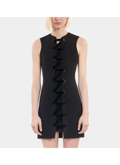 Cette robe femme The Kooples présente un laçage en velours noir avec œillets en métallerie noire, une fermeture par zip latéral invisible et une longueur de 86,5 cm pour une taille 36. Sans manches, elle épouse la silhouette avec une coupe ajustée.