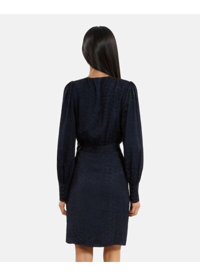 Sublimez votre allure avec cette robe courte signée The Kooples, alliant audace et élégance. Son jacquard léopard et son décolleté cache-cœur apportent une touche de caractère à votre silhouette.