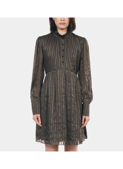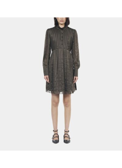 Sublimez votre allure avec cette robe courte en soie signée The Kooples, alliant élégance et modernité. Son col montant et ses manches longues dessinent une silhouette raffinée, idéale pour toutes vos occasions.