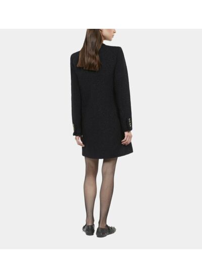 Affirmez votre élégance avec cette robe courte en tweed noir, un classique revisité par The Kooples. Son allure sophistiquée s’adapte aussi bien aux soirées qu’aux journées urbaines.