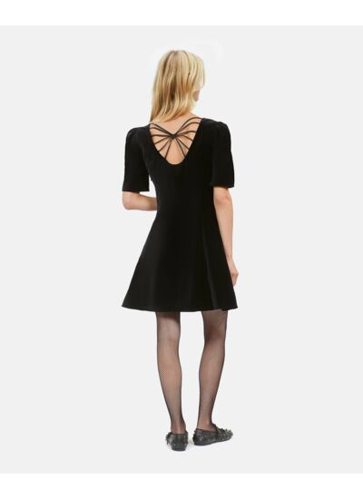 Confectionnée dans un velours doux et profond, cette robe épouse délicatement la silhouette pour un effet seconde peau. Sa coupe courte et ajustée met en valeur vos jambes tout en offrant un confort optimal grâce à la qualité des matériaux. Le noir intense apporte une touche de sophistication intemporelle, facile à accessoiriser selon votre style.
