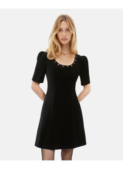 Sublimez vos soirées avec cette robe courte en velours noir, une pièce incontournable signée The Kooples. Son allure élégante et moderne s’adapte à toutes vos occasions, du dîner chic à la sortie entre amis.