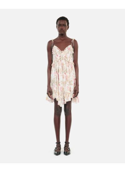 Fabriquée en soie, cette robe femme The Kooples présente un imprimé roses multicolore, des fines bretelles ajustables, une taille empire ajustée, des détails de volants et une doublure complète. Sa longueur est de 68,5 cm pour une taille 36.