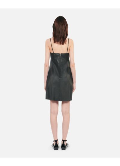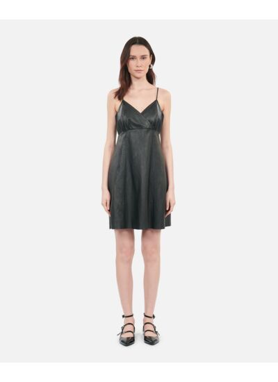 Fabriquée par The Kooples, cette robe en cuir pour femme mesure 75,5 cm de longueur pour une taille 36. Elle dispose de fines bretelles ajustables, d’un col en V croisé, d’une fermeture zippée au dos et d’une doublure intégrale pour un confort durable.