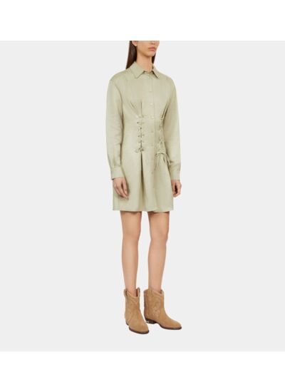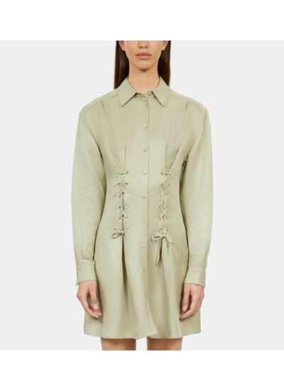 Affirmez votre style avec cette robe courte vert clair signée The Kooples, alliant élégance et modernité. Son laçage subtil devant et au dos apporte une touche audacieuse à une silhouette féminine et structurée.