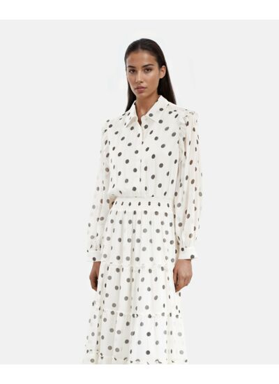 Conçue pour les femmes qui aiment allier confort et style, cette robe se distingue par son col classique et son boutonnage devant qui apportent une touche raffinée. Les manches longues avec boutons aux poignets ajoutent une finition soignée tandis que la taille smockée souligne délicatement la taille. Le bas et le devant doublés garantissent un tombé impeccable et une opacité parfaite.