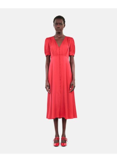 Affirmez votre élégance avec cette robe longue rouge signée The Kooples, un équilibre parfait entre modernité et féminité. Son boutonnage délicat et son imprimé pois jacquard apportent une touche sophistiquée à votre silhouette.