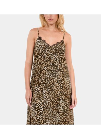 Affirmez votre style avec cette robe nuisette longue en soie au motif léopard audacieux. Une pièce qui allie élégance sauvage et confort luxueux pour sublimer chaque silhouette.