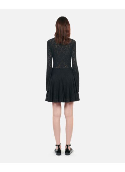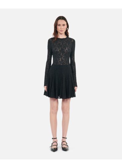 Sublimez votre silhouette avec cette robe patineuse courte noire en dentelle signée The Kooples, un équilibre parfait entre élégance et modernité. Son design raffiné fait de cette pièce un incontournable pour vos soirées ou événements chics.