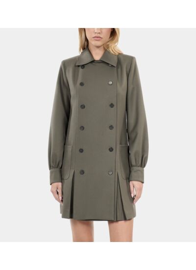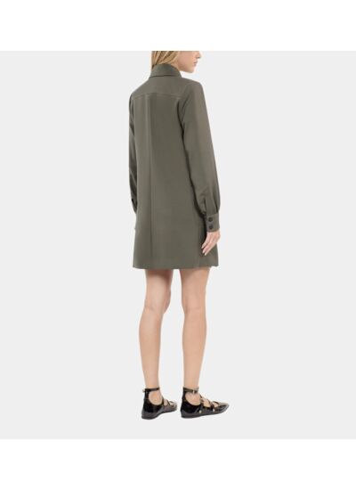 Fabriquée par The Kooples, cette robe droite présente un col cranté, une fermeture double boutonnage, des manches longues et un bas plissé. Sa longueur est de 83,8 cm pour une taille 36, assurant une coupe ajustée et élégante.