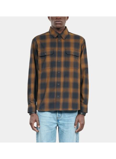 Fabriquée par The Kooples, cette chemise homme présente un tissu à carreaux noirs et marrons, une coupe droite avec col classique, des manches longues avec poignets boutonnés et une fermeture à boutons sur le devant. Sa composition assure durabilité et confort.