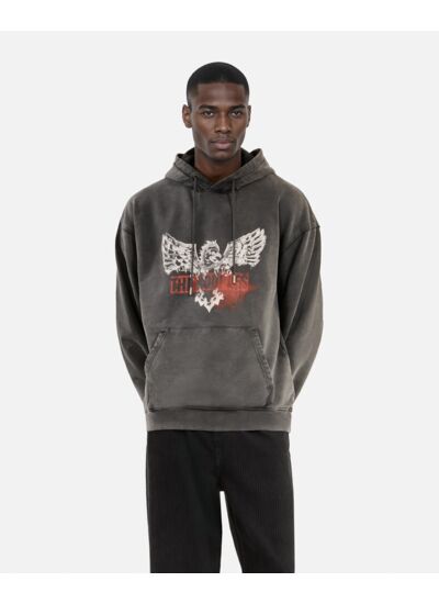 Marque : The Kooples. Matière : coton délavé avec abrasions. Coupe large. Capuche avec cordon de serrage. Manches longues. Poche kangourou. Bords côtes. Sérigraphie Eagle.