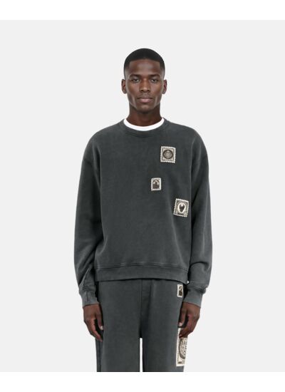 Confectionné en coton délavé, ce sweatshirt offre une texture douce et un effet vintage unique qui évolue avec le temps. Sa coupe large et ses manches longues assurent une liberté de mouvement optimale, tandis que le col rond classique apporte une touche d’élégance simple. Les patchs timbres apportent une signature graphique distinctive, renforçant l’identité de la pièce.