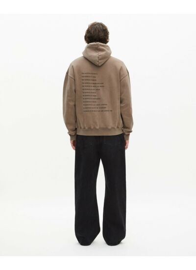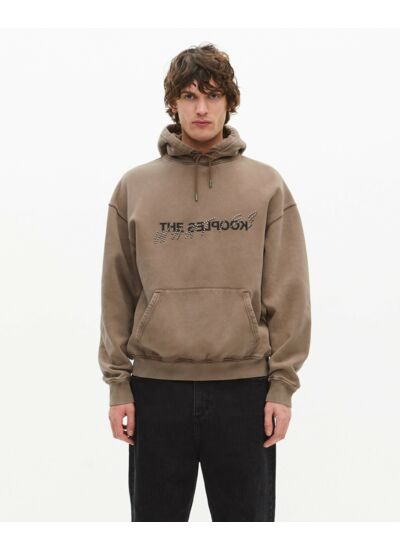 Marque : The Kooples. Matière : coton délavé. Coupe large. Capuche avec cordon de serrage. Manches longues. Poche kangourou. Bords côtes. Sérigraphie avec studs devant. Conseil taille : prendre une taille en dessous en cas de doute.