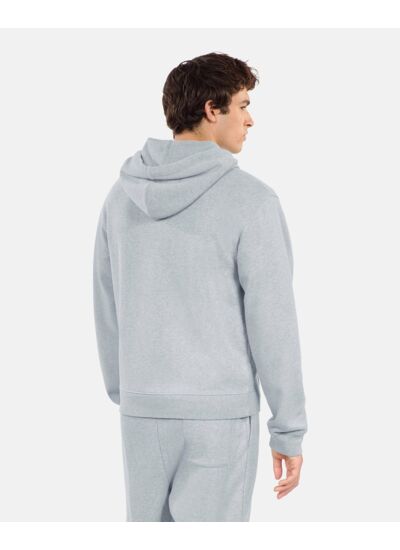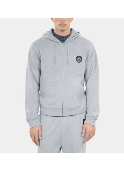Sweatshirt homme The Kooples, coupe large, capuche avec cordon de serrage, manches longues, fermeture zippée, poche kangourou, bords côtes, patch blason devant. Conseil taille : privilégiez la taille inférieure en cas de doute.