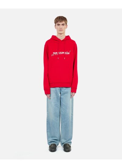 Affirmez votre style avec ce sweatshirt à capuche rouge signé The Kooples, un incontournable pour un look urbain et moderne. Conçu pour allier confort et caractère, il s’impose comme la pièce maîtresse de votre garde-robe casual.