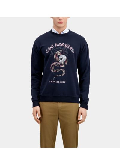 Col rond, manches longues, bords côtes pour un maintien optimal. Sérigraphie devant pour un look distinctif. Marque : The Kooples.